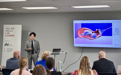Wong earned the top prize with his presentation, “Breaking the Wall of Safer Childbirth,” in which he shared his team’s novel device to assist with difficult births in a way that is simpler and less risky than traditional methods. A panel of judges made up of leaders from Illinois’ public universities selected Wong’s presentation out of a field of 15 young innovators and entrepreneurs.